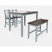 Clean lines and a classic silhouette with a two toned finish, the Asbury Park collection is available in both dining and counter height options. This collection seats four with room for two additional chairs sold separately. Set includes table, two stools, and bench.