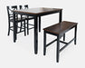 - Set includes one counter-height dining table, one bench, and two barstools