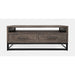 Jofran's East Hampton collection is an attractive balance of natural and industrial materials. Distressed wood tops with solid metal bases create a look that is easily at home in living spaces. This cocktail table features two drawers and open storage.