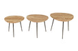 Jofran's Global Archive Collection is a study in artistry and skill. We searched far and wide for the best craftsmen- selecting only the finest- to create a large but curated collection of freshly styled accent pieces. This three-piece set is features smooth wood tops and metal legs.