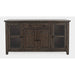 Rich with crisp lines and a rustic look perfectly describes this collection. This collection has a hand wire-brushed finish and four solid legs. This server features one drawers, two wood doors and two glass doors - each with adjustable interior shelves.