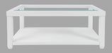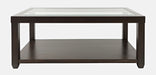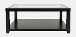 Urban Icon is a collection that combines modern accents with traditional looks and tempered glass tabletop inserts. This cocktail table features a shelf for open storage or display and casters.
